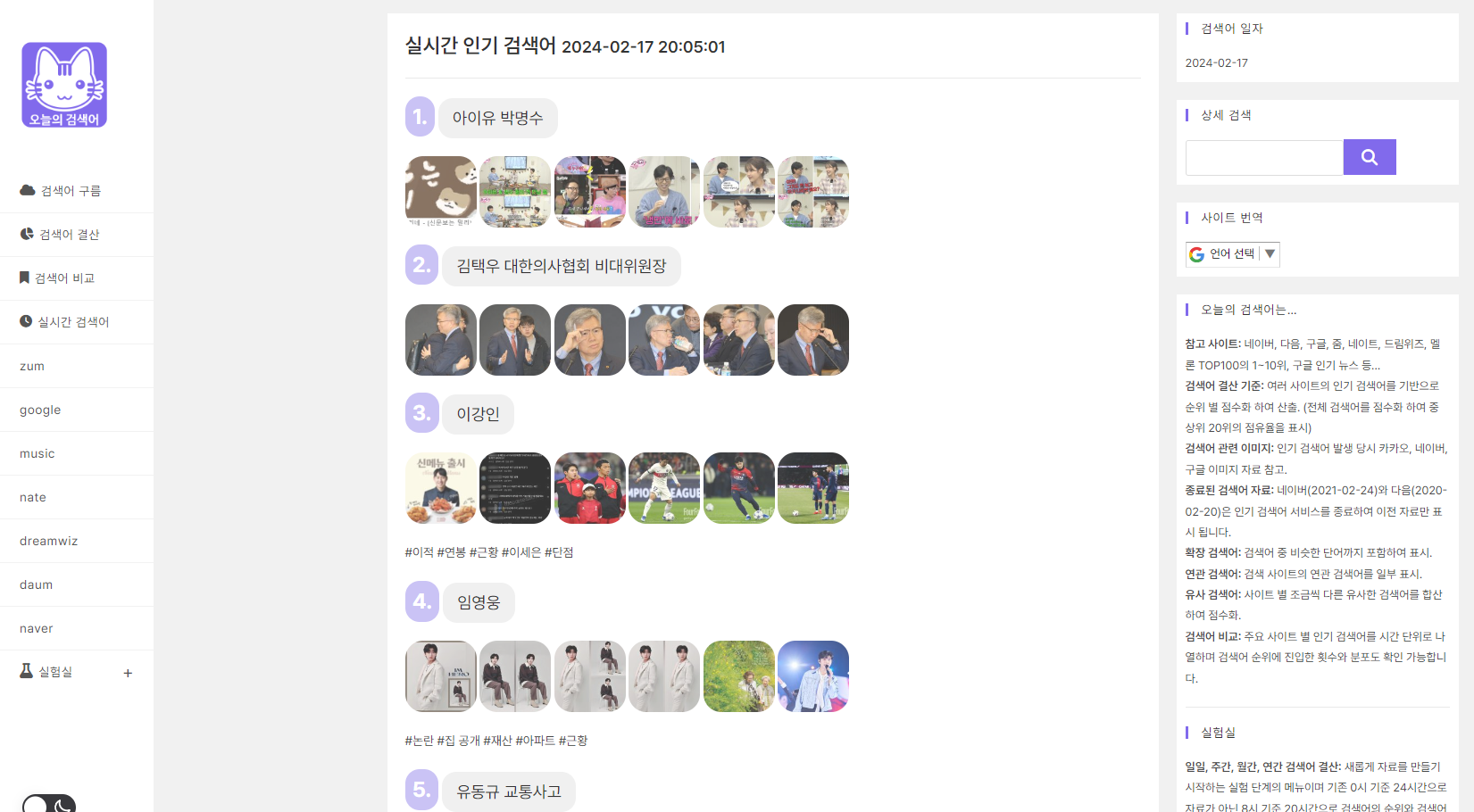 블랙키위 사이트가 키워드에 대한 분석을 해주는 사이트라면 이지미넷은 사람들이 조회하는 키워드가 뭔지 궁금할때 이용하는 검색어 순위 사이트입니다. 예전에는 네이버나 다음에서 실시간 검색어 순위를 제공해주었는데 이제는 실시간 검색어를 알 수 없기 때문에 이지미넷에서 일일 실시간 검색어 순위를 볼 수 있습니다. 무슨 내용으로 글을 쓸지 고민될때 실시간 인기 검색어를 참고해보시면 도움이 될 것 같아요~