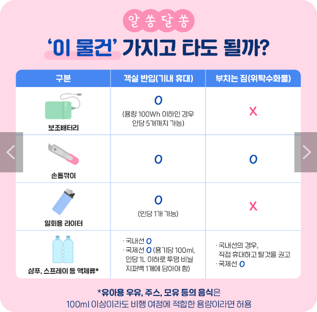 여름휴가철이 다가오면서 국내외로 여행을 준비하는 분들 많으시죠? 그런데 매번 비행기 탈 때마다 기내 반입 가능여부 또는 위탁수화물 금지 여부가 헷갈리는 물품들이 있지 않으신가요? 오늘은 기본적인 기내 반입 금지 물품 목록과 헷갈리는 품목 조회하는 방법까지 알려드릴게요.