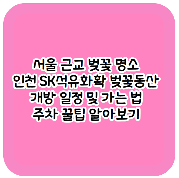 오래전부터 인천의 벚꽃 명소로 유명했던 SK 석유화학이 코로나와 우천 등으로 5년 만에 다시 시민들에게 개방된다고 합니다. 총 3만 5천 평 규모 SK석유화학 벚꽃동산의 1.5km 산책길에는 수없이 펼쳐진 벚꽃나무들이 아주 장관이라고 하는데 언제부터 개방하는지, 교통 및 주차 정보까지 알아보도록 하겠습니다.