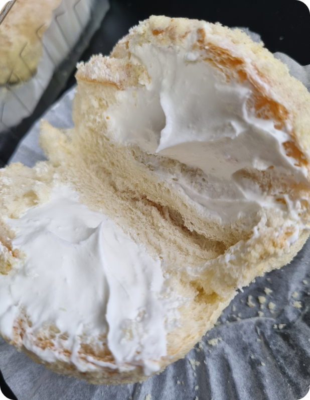 처음에는 겉에 보이는 가루 색깔때문에 슈크림인 줄 알았는데, 다시 보니 우유크림이더라고요. 우유크림이랑 생크림이 뭐가 다른지는 잘 모르지만 진한 우유크림이 너무 맛있었어요~