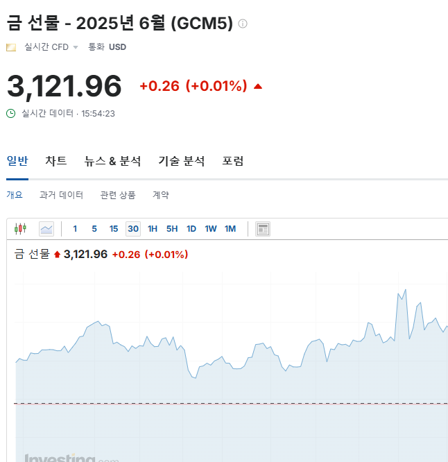 금 선물 가격은 고점에서는 살짝 내려왔지만... 다시 올라가는 중.