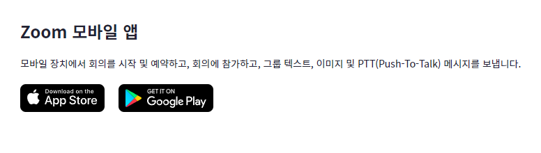 어플에서 줌 이용시 구글플레이스토어 또는 앱스토어에서 앱을 다운로드