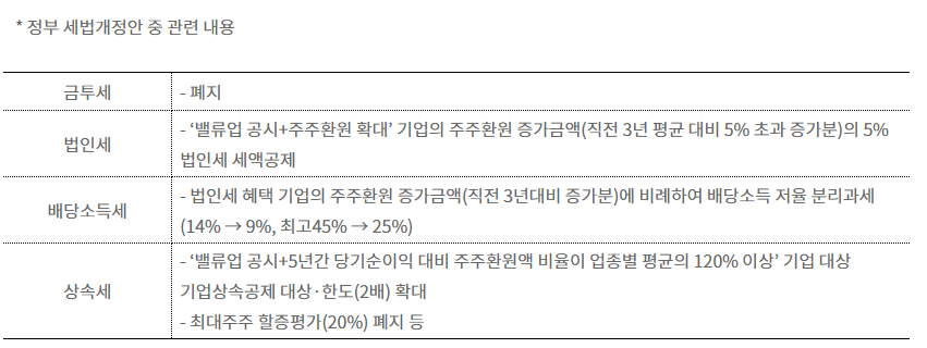 정부 세법 개정안 중 관련내용