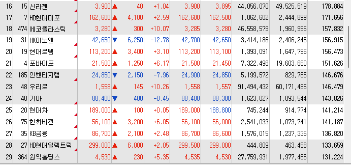 - 코스피 개인 매도 7730 외인 매수 2233 기관 매수 4987