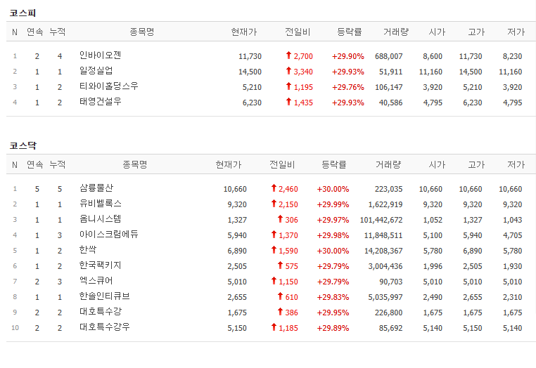 상한가 종목