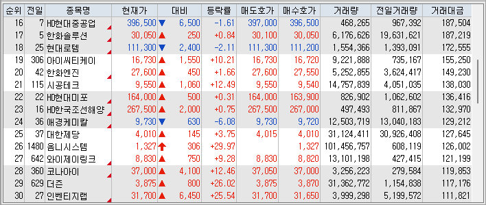 거래대금 상위 종목