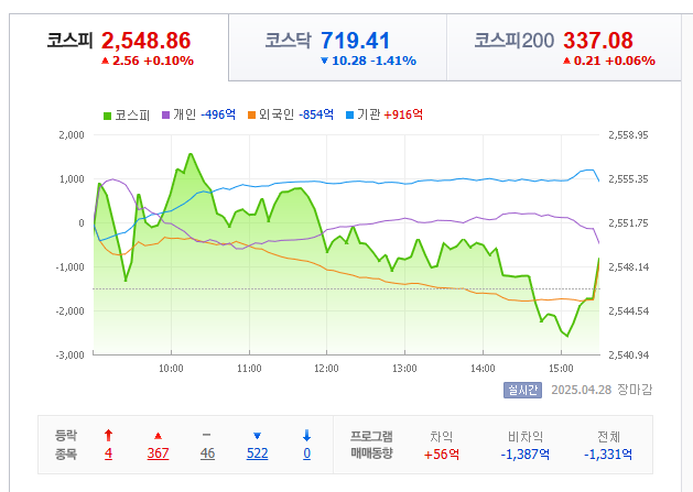 코스피 2548.86 코스닥 729.69