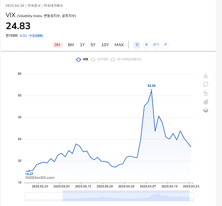 경기 둔화 우려도 있고, 트럼프의 관세 위협?이 안정되면서 하향안정화 되고 있는 듯.