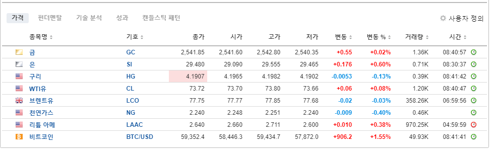 미국 시장이 좋아진 덕분인지 비트코인 시세도 살짝 올라갔습니다. 금이랑 은도 다시 좀 올라갔네요.