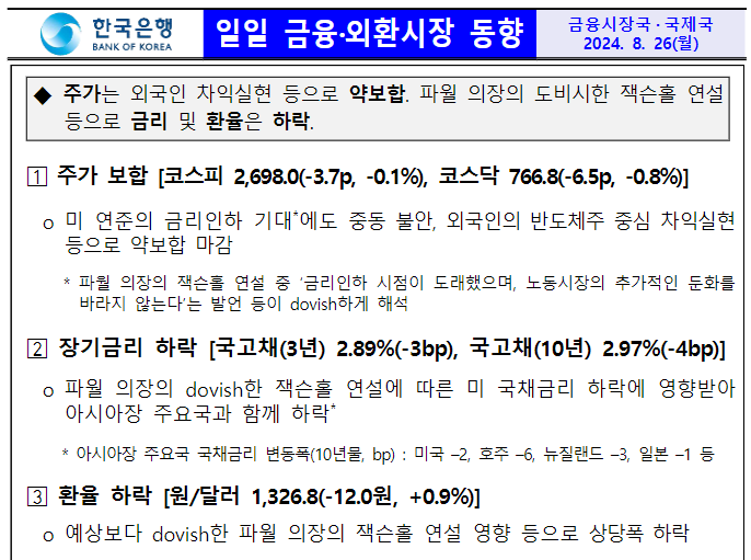 한국 시간으로 8월 29일 이른 새벽에 발표될 엔비디아의 실적 발표에 따라 시장의 흐름이 결정될 것으로 보입니다. 엔화 강세로 인해 남은 엔캐리트레이드 자금이 청산되는지 여부도 지켜봐야 할 것 같습니다. 여러모로 어려운 시장인 것 같아요ㅜㅜ