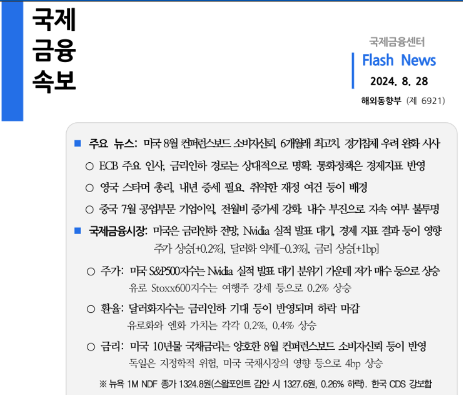 2024년 8월 28일 주식시장 개장 전 시장상황 체크