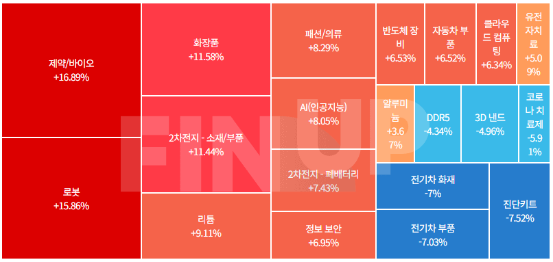 제약/바이오(상장주들), 로봇, 화장품, 2차 전지