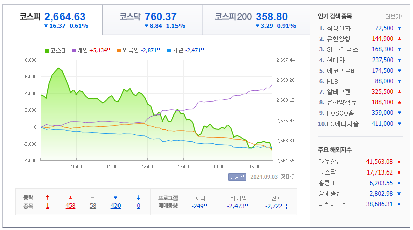 장마감 후 오늘의 주식시장 정리입니다.