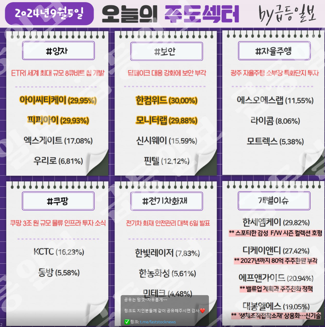 오늘의 주요 테마, 상한가 종목, 거대대금 상위 상승률 높은 종목