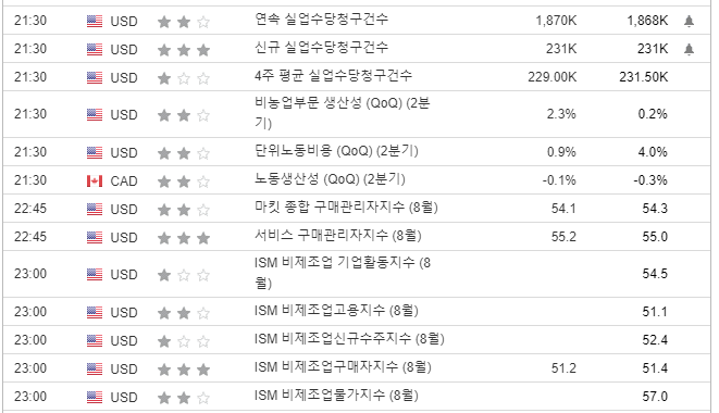 ISM 비제조업구매자지수, 서비스구매관리자지수, 실업수당청구 건수 등 오늘도 중요한 지표들 발표가 있습니다.