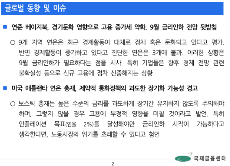 어제 발표된 졸트 고용 보고서에 대한 국제금융센터의 분석